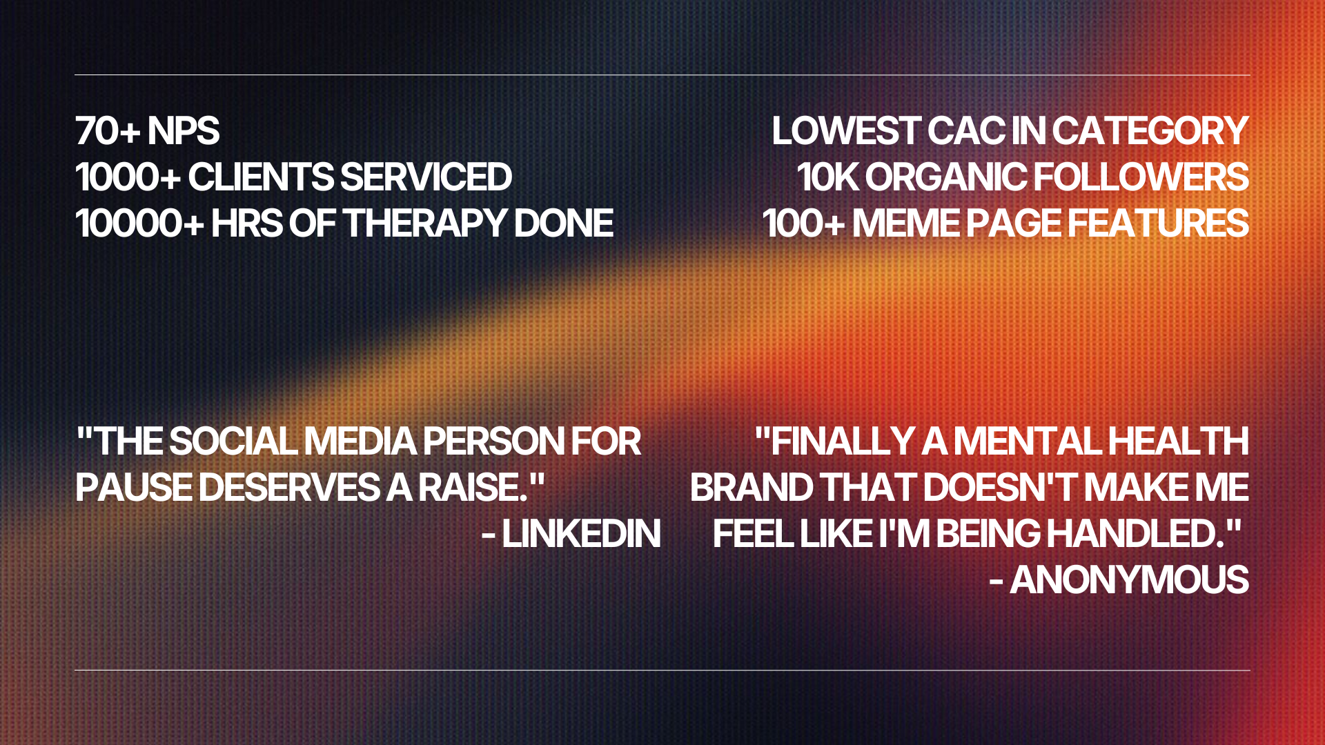 Mental health came with stigma. Everyone saw it, but no one spoke about it openly. People suffering didn't speak up because they didn’t want to be seen as broken. And the brands weren't helping; they absorbed the stigma into their marketing with soft gradients, careful language & hushed tones. The unspoken message was: this is delicate, let's not make noise about it. But tip-toeing around the subject doesn't reduce stigma, it reinforces it. The entire category looked the same: everyone competing to be the most soothing, the most careful, the most safe. And in doing so, participating in the same silence they claimed to be breaking.